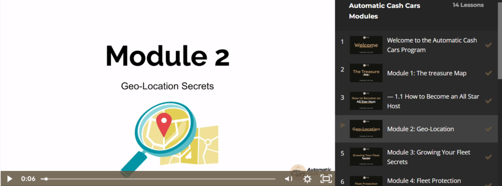 Automatic Cash Cars is an in-depth training program that will show you how to get into the car rental business. On top of the six main modules, there is additional bonus training content that will help you expand your business even further.