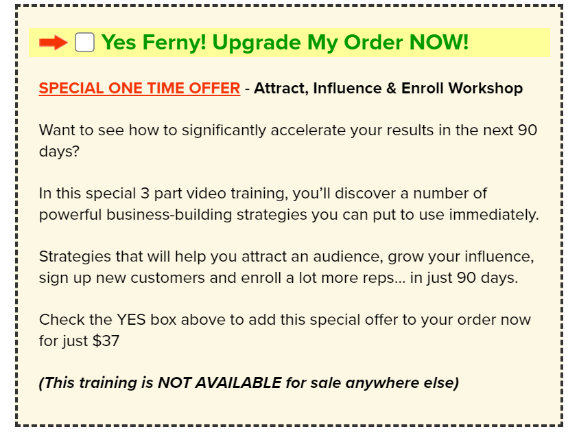 As soon as you buy the Attraction Marketing Formula, they will try to upsell you one of their more expensive products and services.