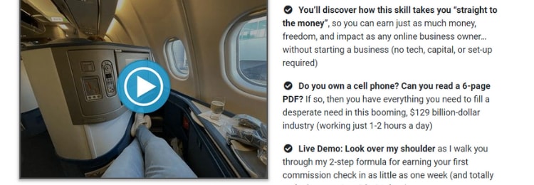 The landing page before the free training video where Payton Welch shares the business model and pitches you his main program is a bit hyped up.